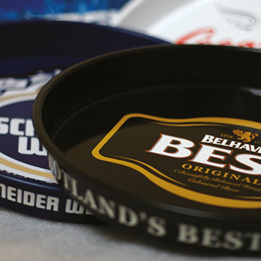 | Printing, pricing and minimum orders | Prior to being made into a tray, the tin metal is printed on both sides, using offset printing (70 lpc). The trays are then punched out and they then undergo deep-drawing processes. The main factor determining the price is – among the number of items ordered – the number of printing processes necessary. Metal trays that feature four-colour printing on both sides, i.e. eight printing processes, are more elaborate in their production. This fact will also be reflected by the price. The minimum number of metal trays for orders of this kind is 1,000. However, this is really only economical for orders exceeding 2,000 metal trays. |